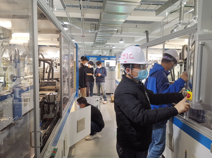 方案確定,馬上實施,毫不耽擱。團隊與時間賽跑,直至攻破技術(shù)難關(guān),成功完成首臺串焊機二次配接線工作,雖然時間已是凌晨,但是每個人的臉上都寫著“值得”兩個字!一個可能導致項目嚴重滯后的問題在24小時內(nèi)妥善解決,無不彰顯電科人走好科技自立自強之路的拼搏精神!